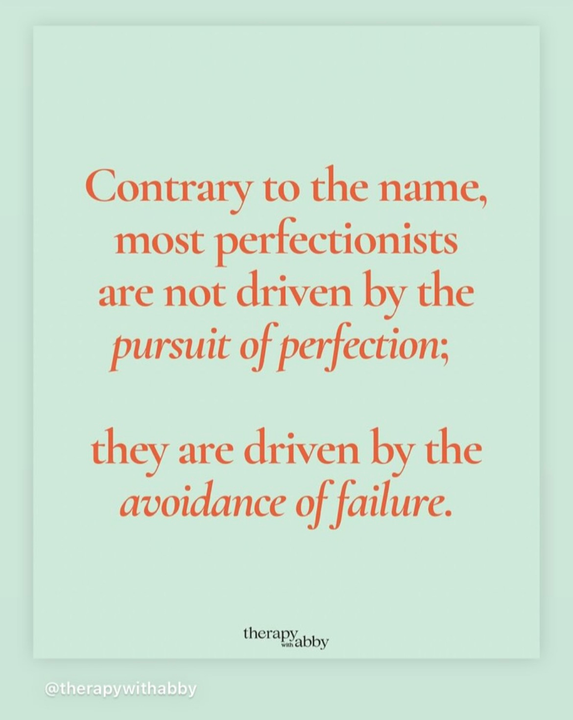 Perfectionism is “A pattern of unhelpful thoughts and beliefs that focus on unreasonably high self-standards and endless self-criticism.”